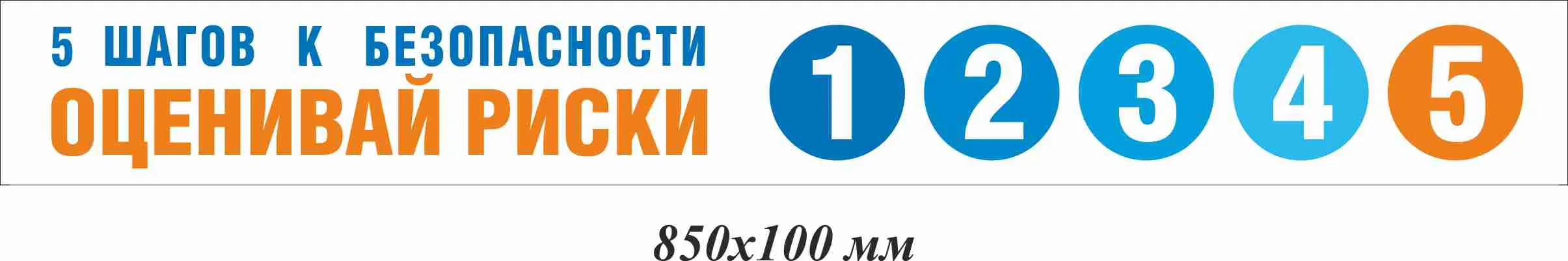 5 шагов к безопасности ОЦЕНИВАЙ РИСКИ 1 2 3 4 5, 850х100 мм