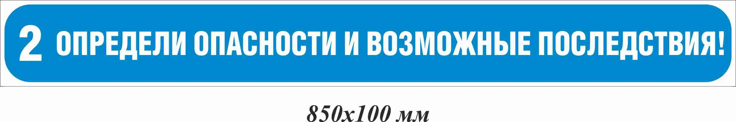 Наклейка информационная на ступени 2, Определи опасности и возможные последствия! 850х100 мм, материал пленка ПВХ самоклеящаяся, форма прямоугольная края закругленные, цвет белый/синийАрт. ЦБ-00017289