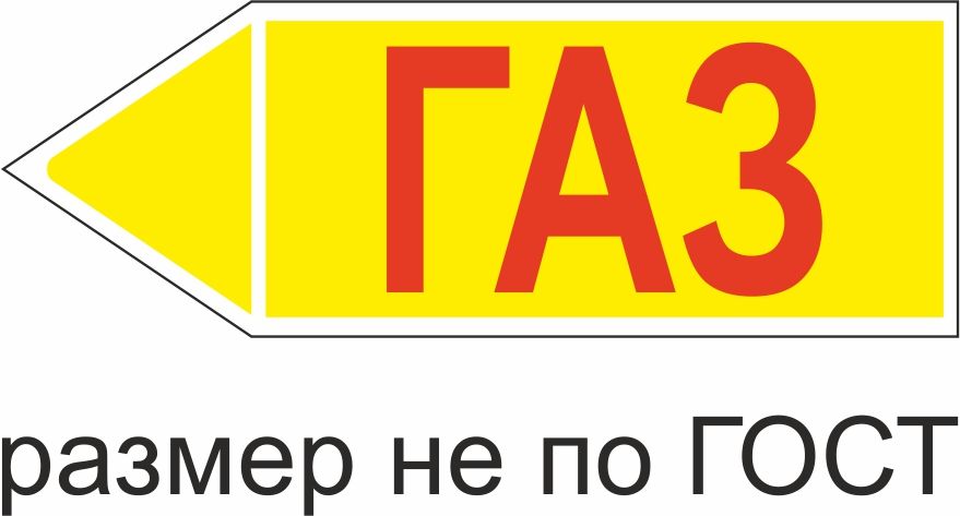 Маркер самоклеящийся Газ низкого давление 148х420 мм, фон желтый, буквы красные, налево