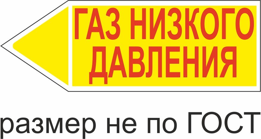 Маркер самоклеящийся Газ низкого давление 148х420 мм, фон желтый, буквы красные, направо