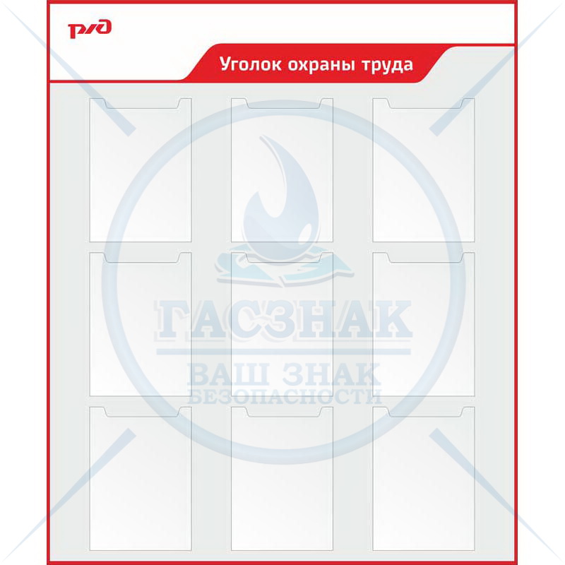 Стенд Информация РЖД, 2 кармана А4 пл., 2 кармана А4 объемн., 2 перекидныхй системы на 6 ячеек (1400х1200; Пластик ПВХ 4 мм, алюминиевый профиль; )