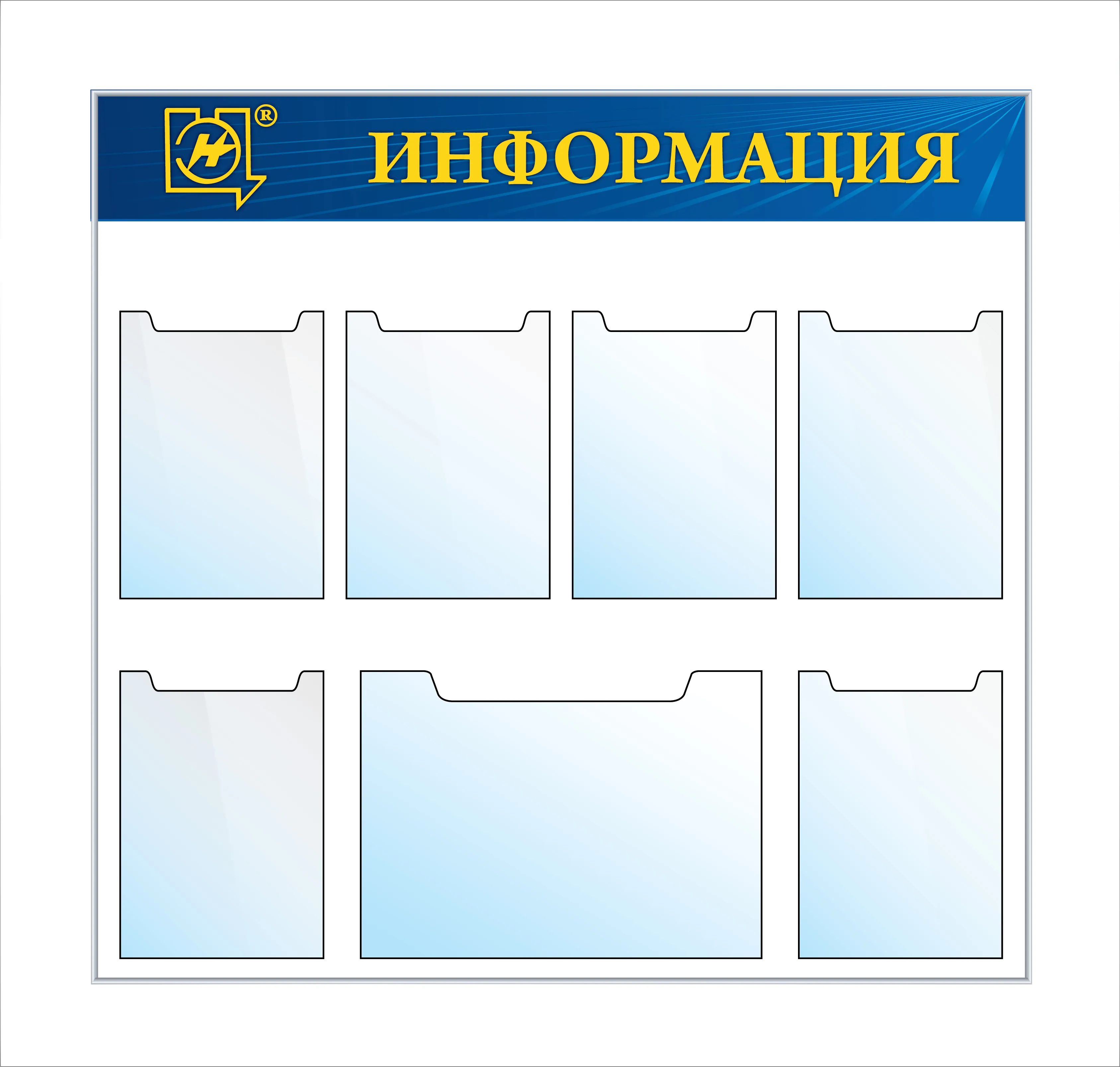 Стенд Информация. Карманы А4х6шт, логотип (1000х1000; Пластик ПВХ 4 мм, пластиковый профиль; Пластиковый)