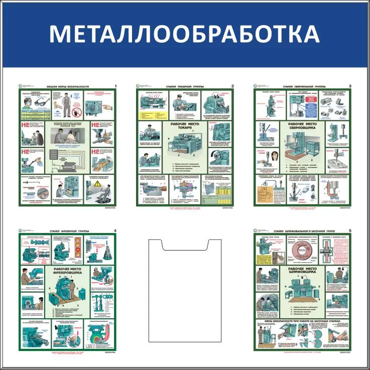 Стенд Металлообработка, 5 плакатов А3, 1 карман А4, Логотип (1200х1100; Пластик ПВХ 4 мм, пластиковый профиль; Пластиковый красный)