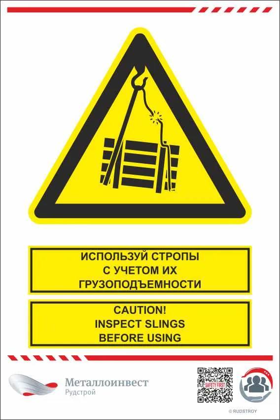 Мультиязычный знак безопасности - Используй стропы с учетом их грузоподъемности