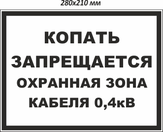 На нашем сайте можно купить Копать запрещается. Охранная зона кабеля 0,4кВ по доступной цене. Предусмотрена доставка заказов в Петропавловске.