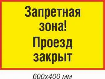 Фон желтый RAL 1023, внешняя рамка красная RAL 3020, надпись черная RAL 9004 (600х400; Металлокомпозит 3 мм; )